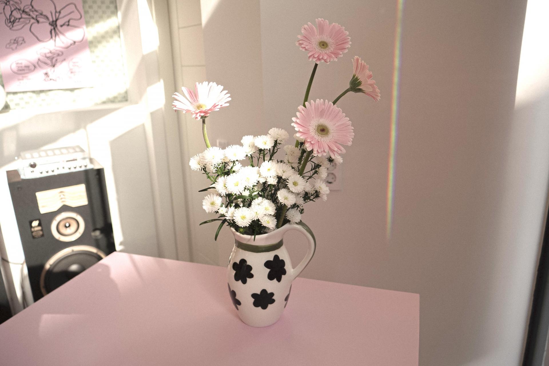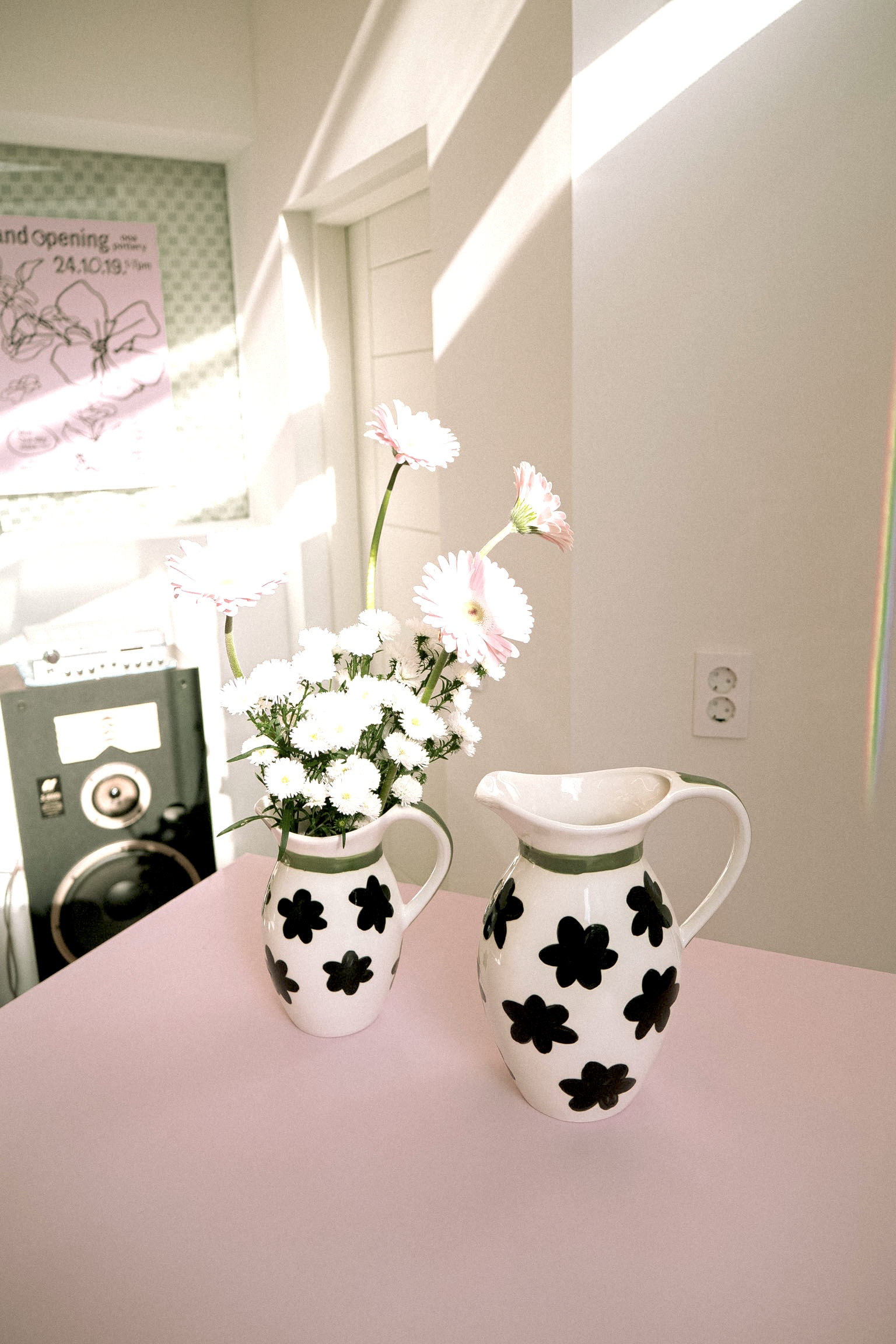 플라워가 페인팅 된 저그 형태의 화병입니다.