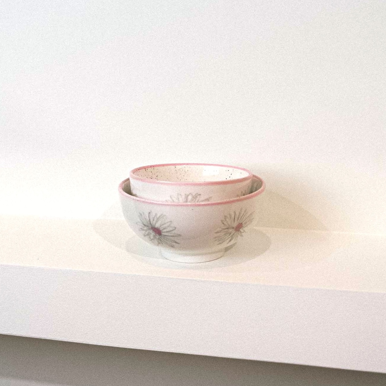 핑크라인과 그레이 플라워가 페인팅 되어 있는 밥&국 공기 입니다.