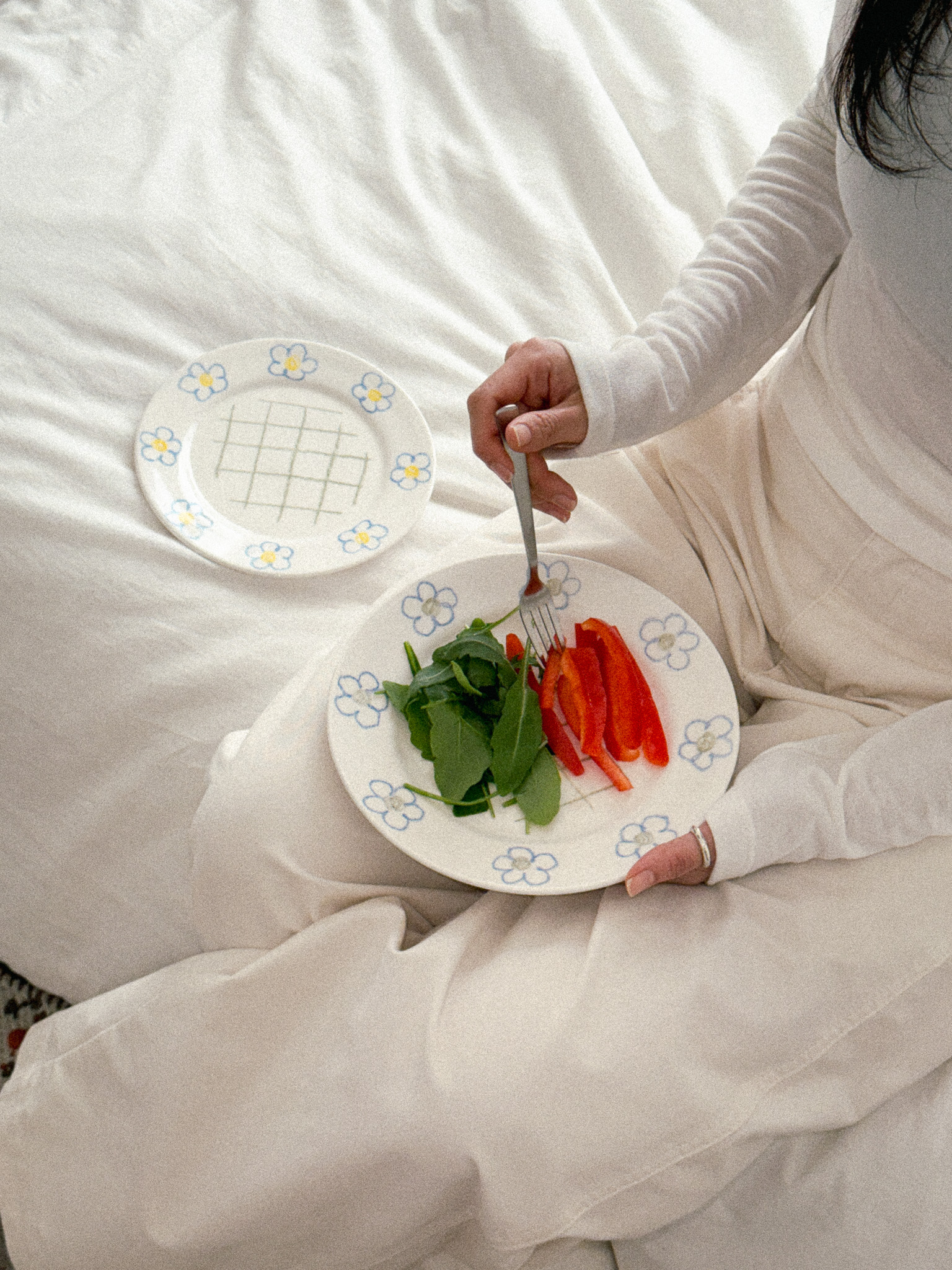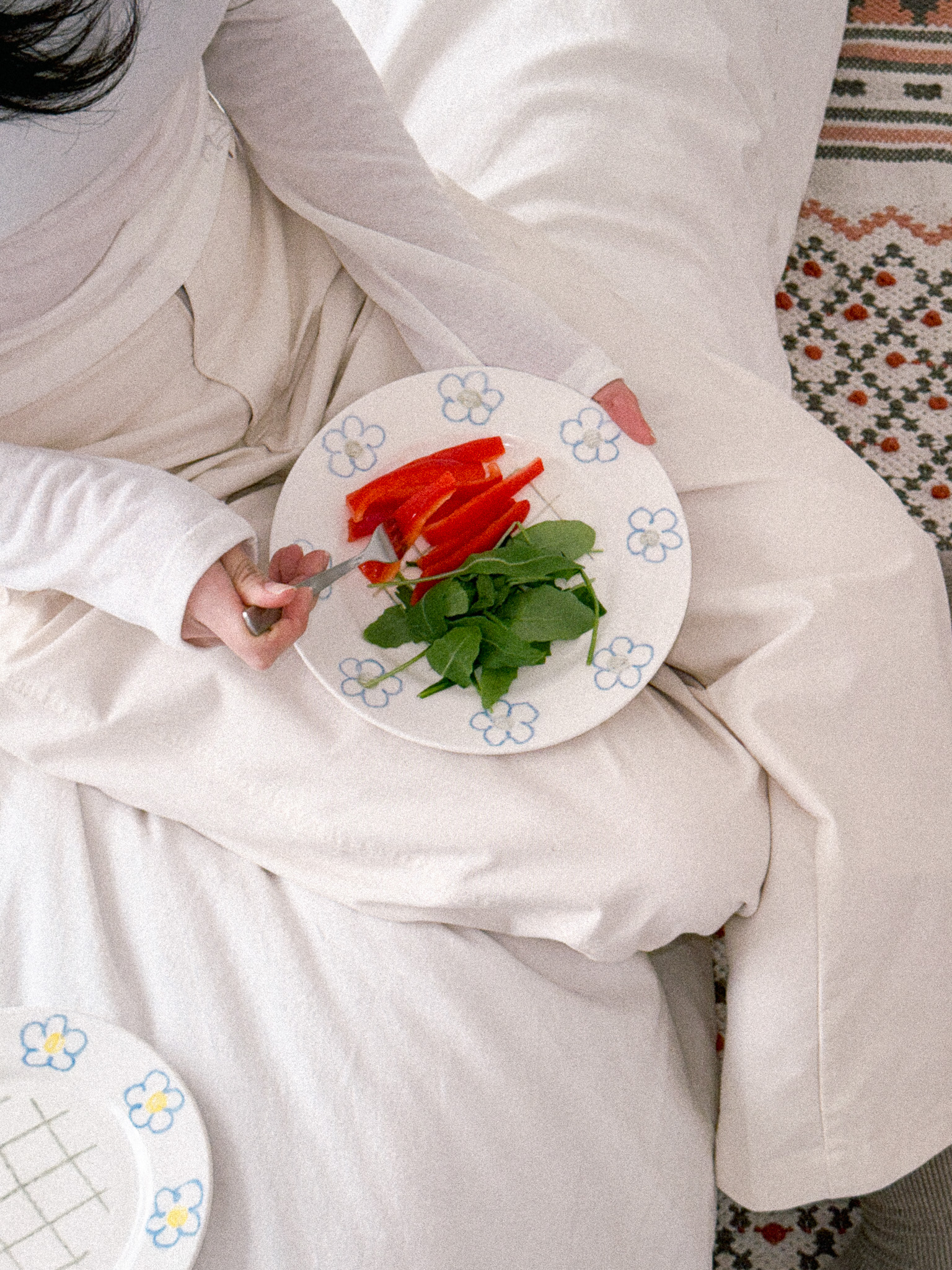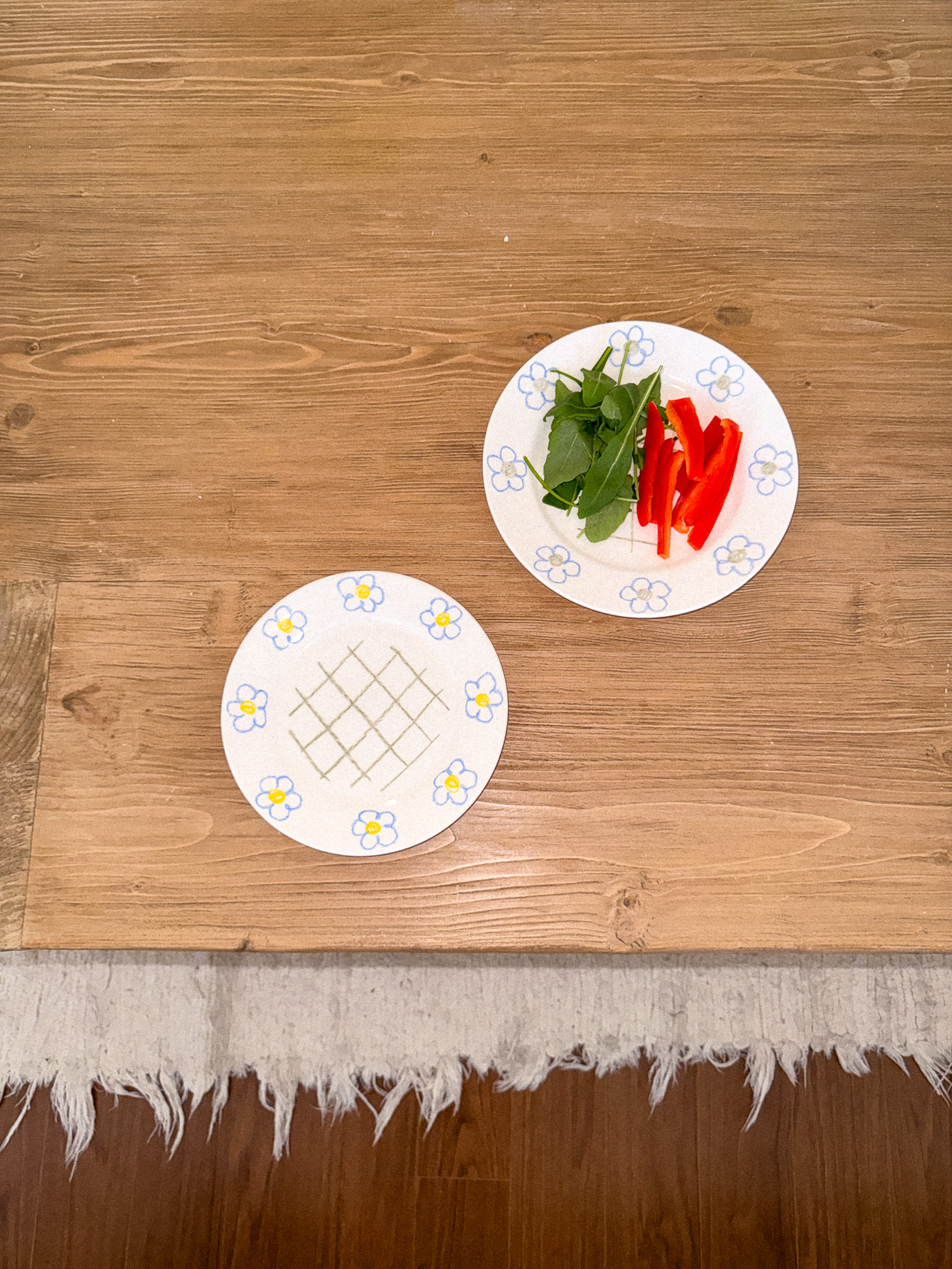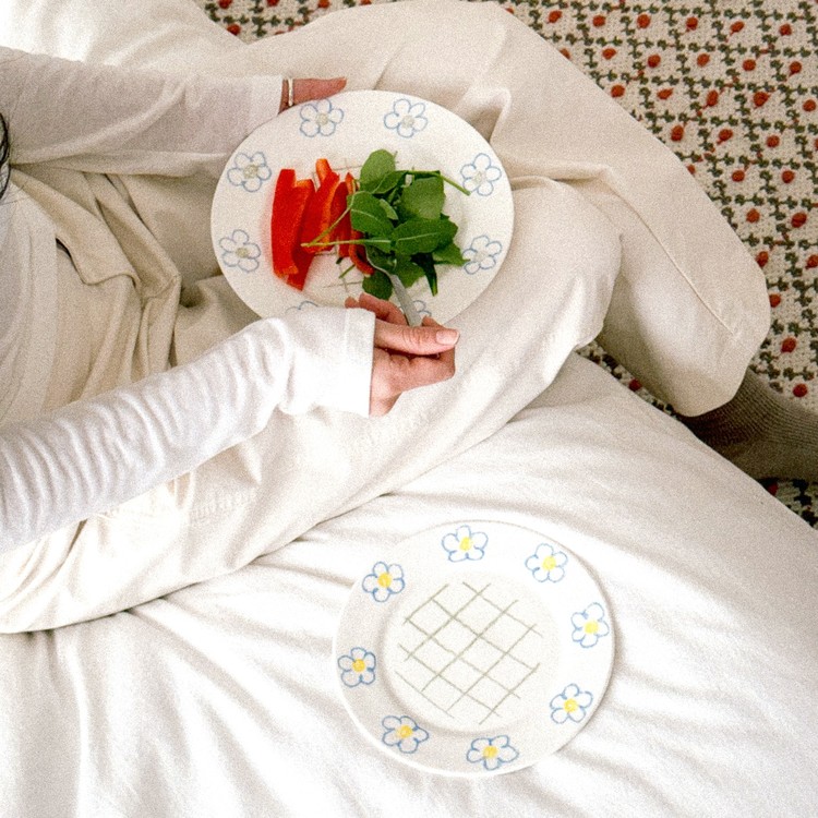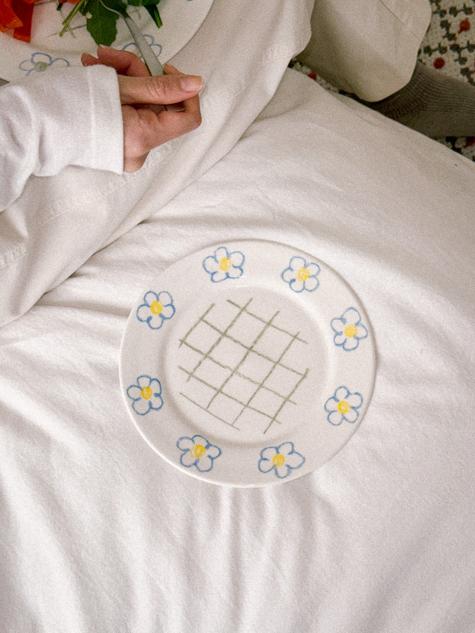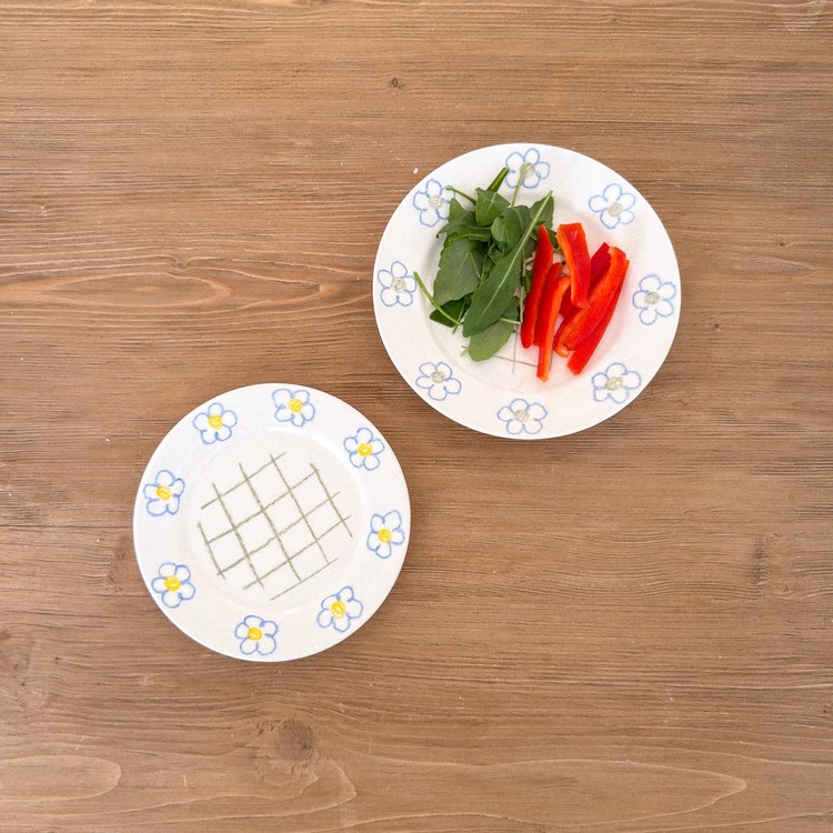 빈티지한 블루 플라워가 페인팅 되어 있는 체크 플레이트입니다.