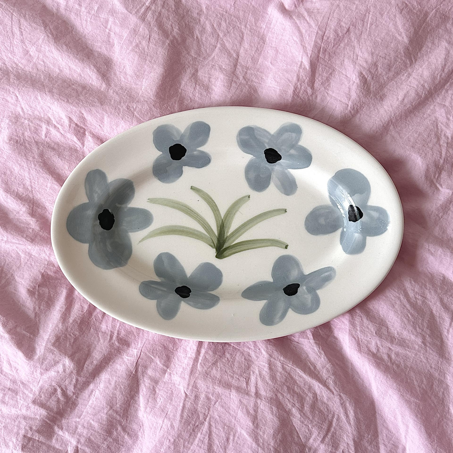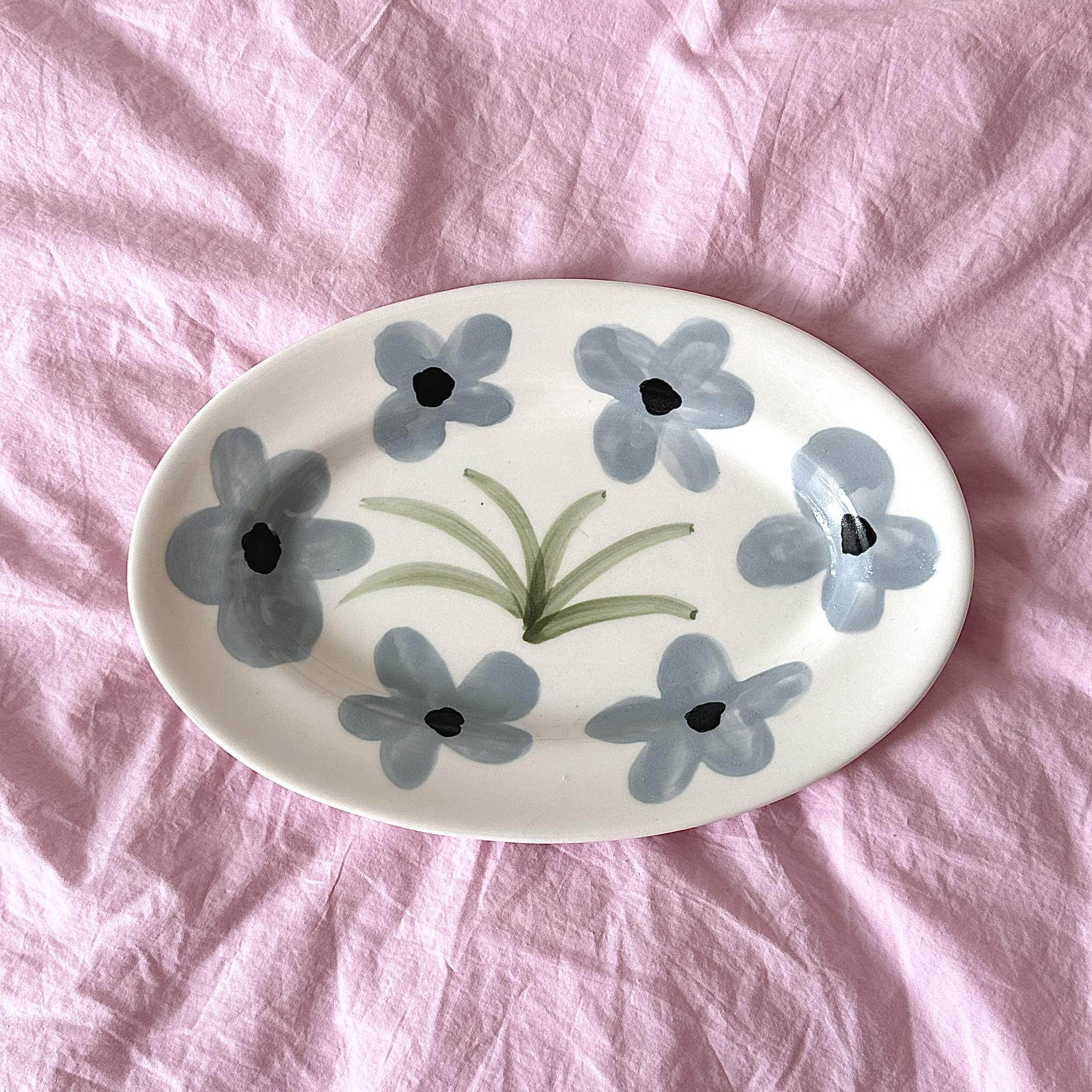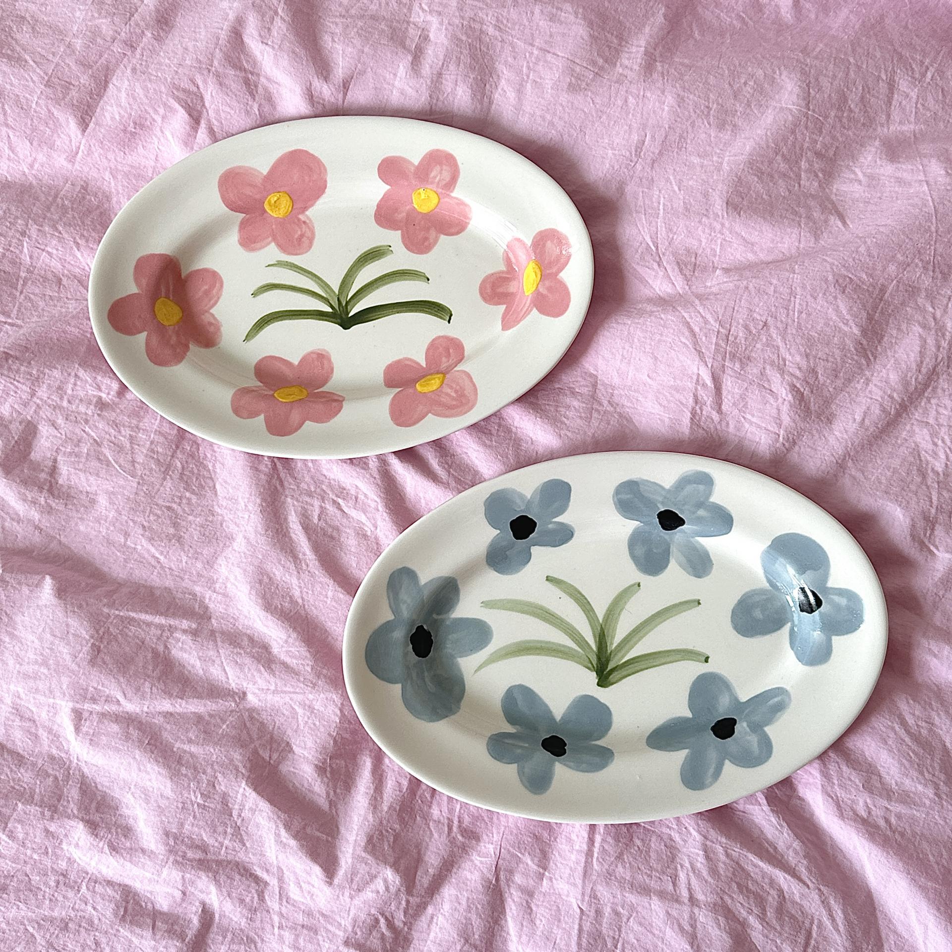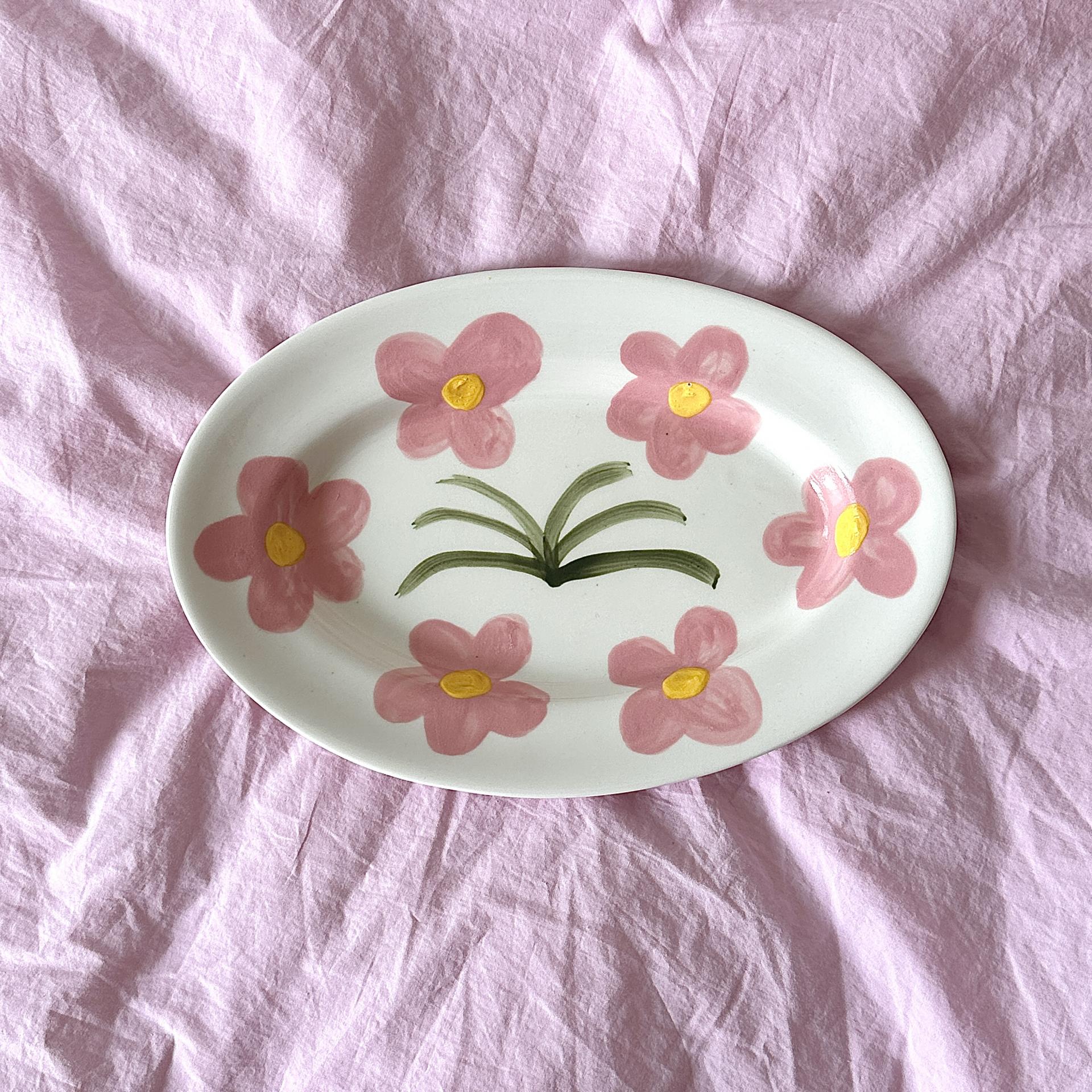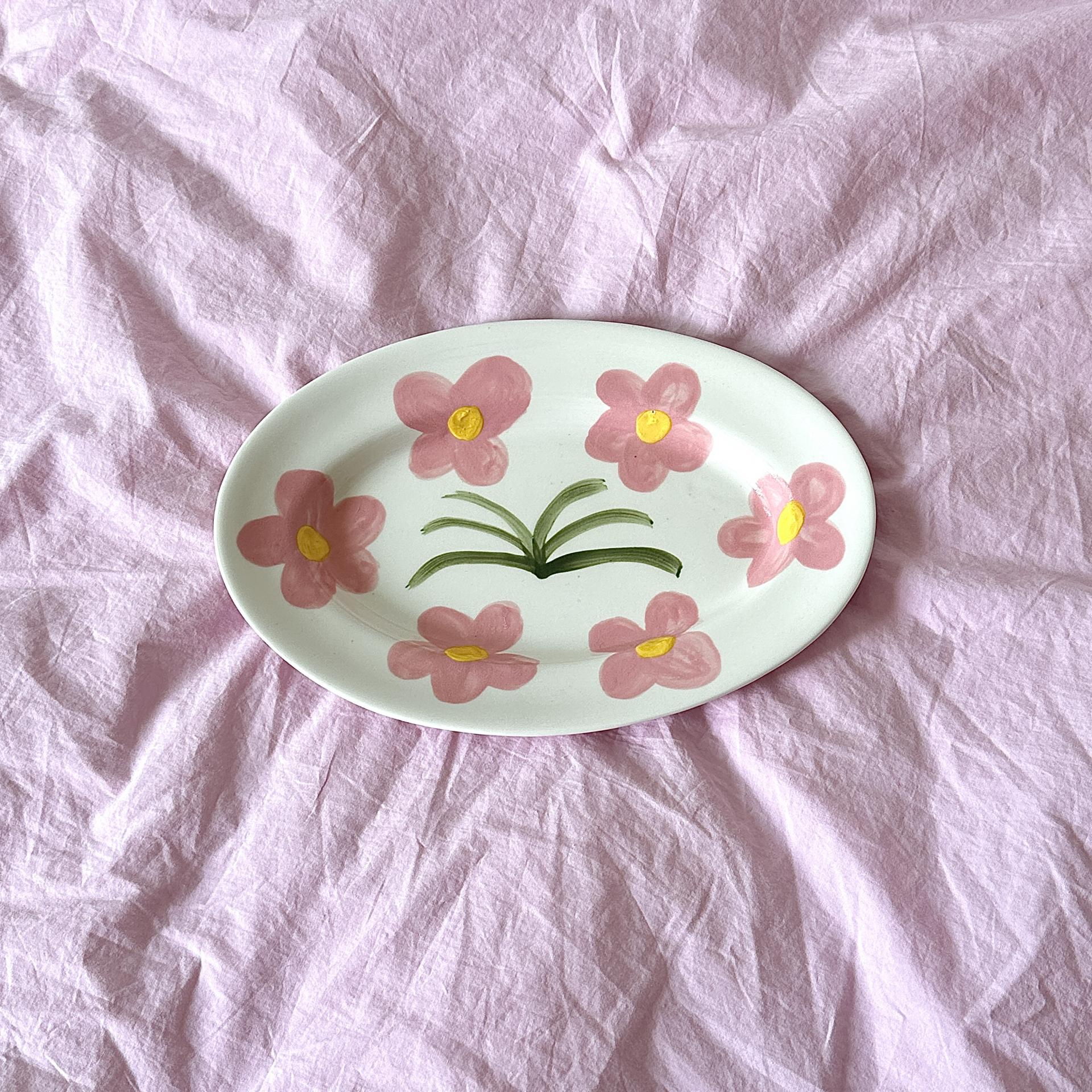 꽃과 잔디가 그려져 있는 오발 플레이트입니다.