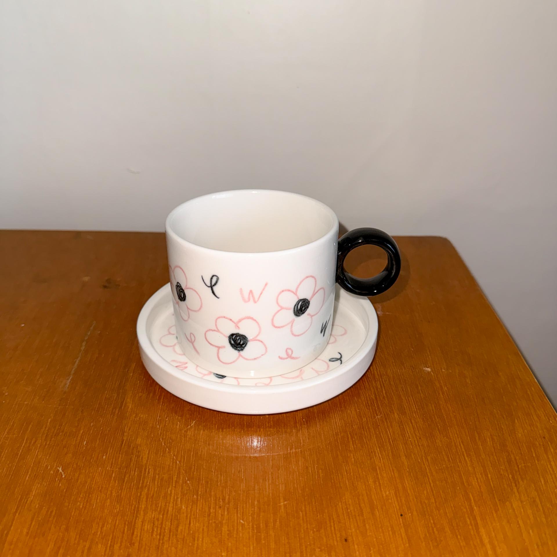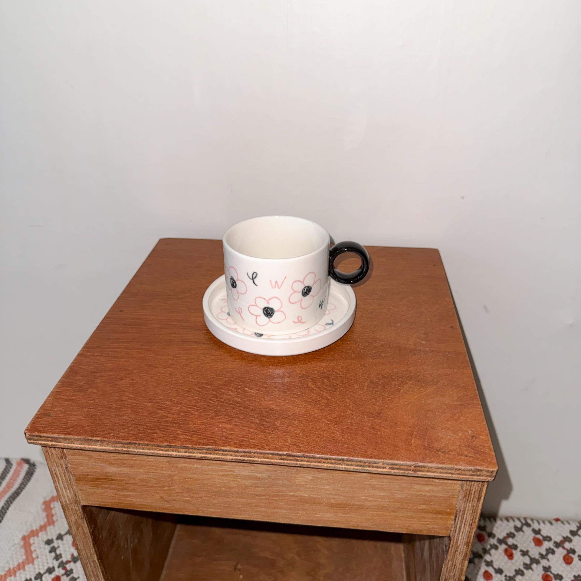 오오아포터리 시그니처 핑크 플라워가 페인팅 된 pink flower mug 입니다.