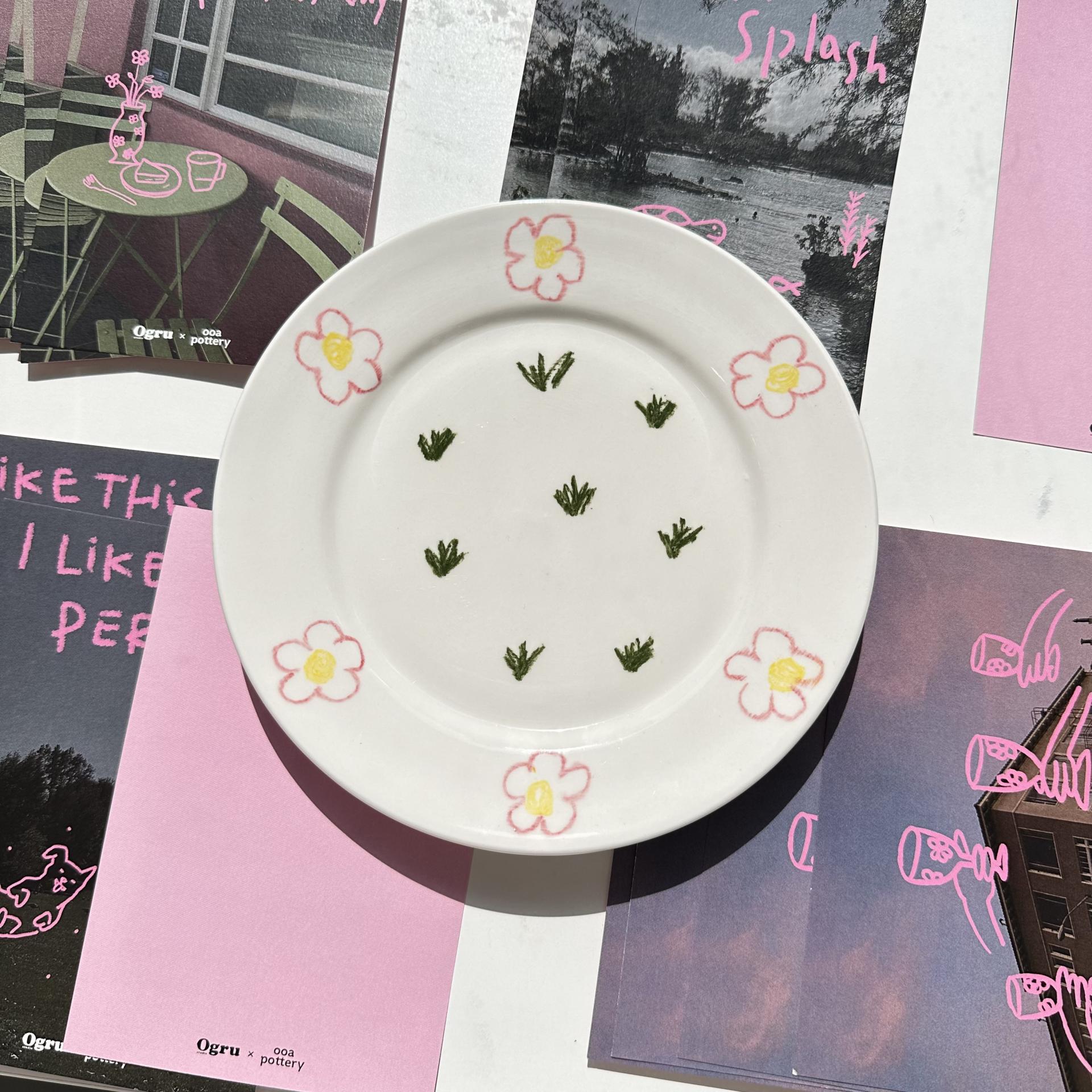 오오아포터리 시그니처 플라워 패턴이 페인팅 되어 있는 flower mini plate 입니다.