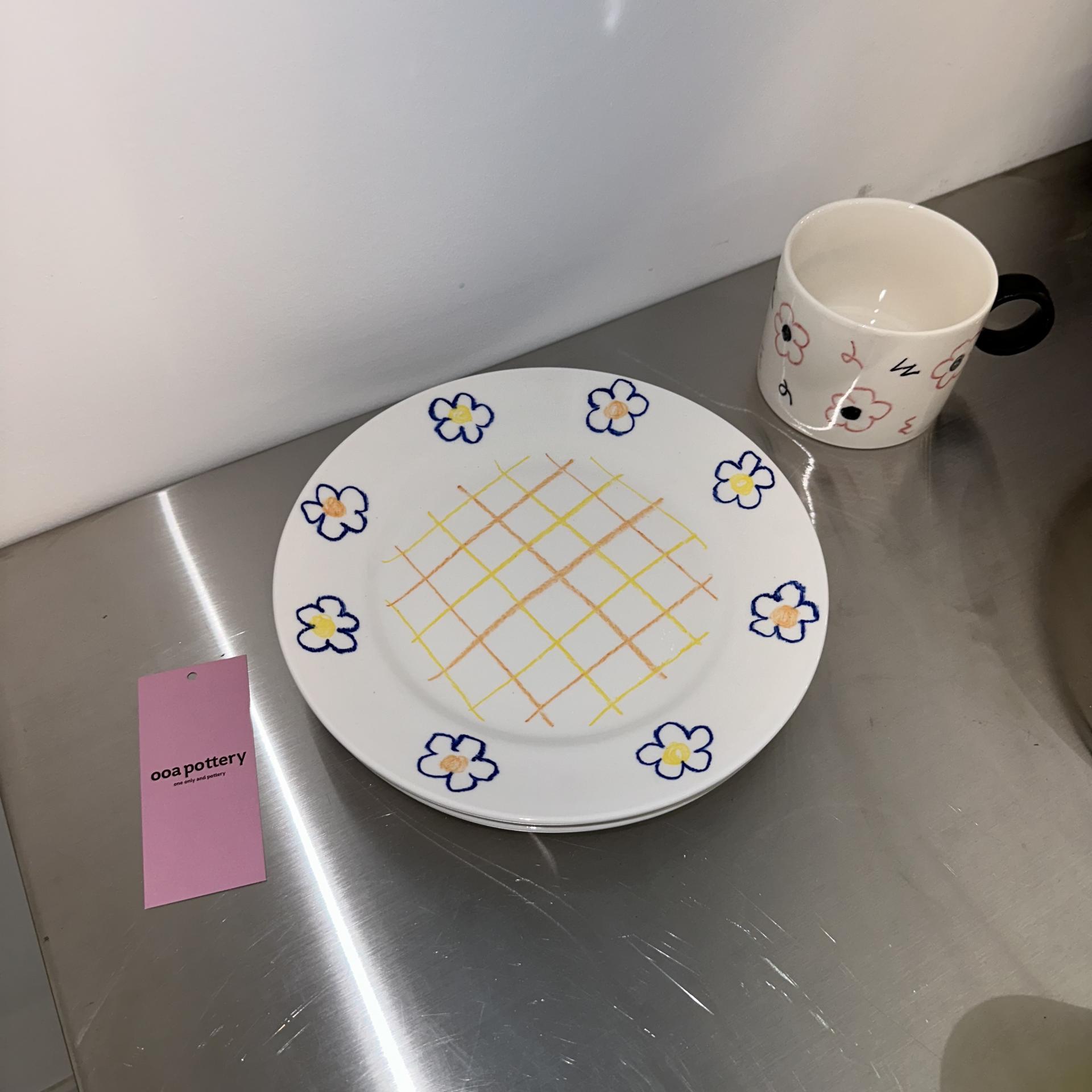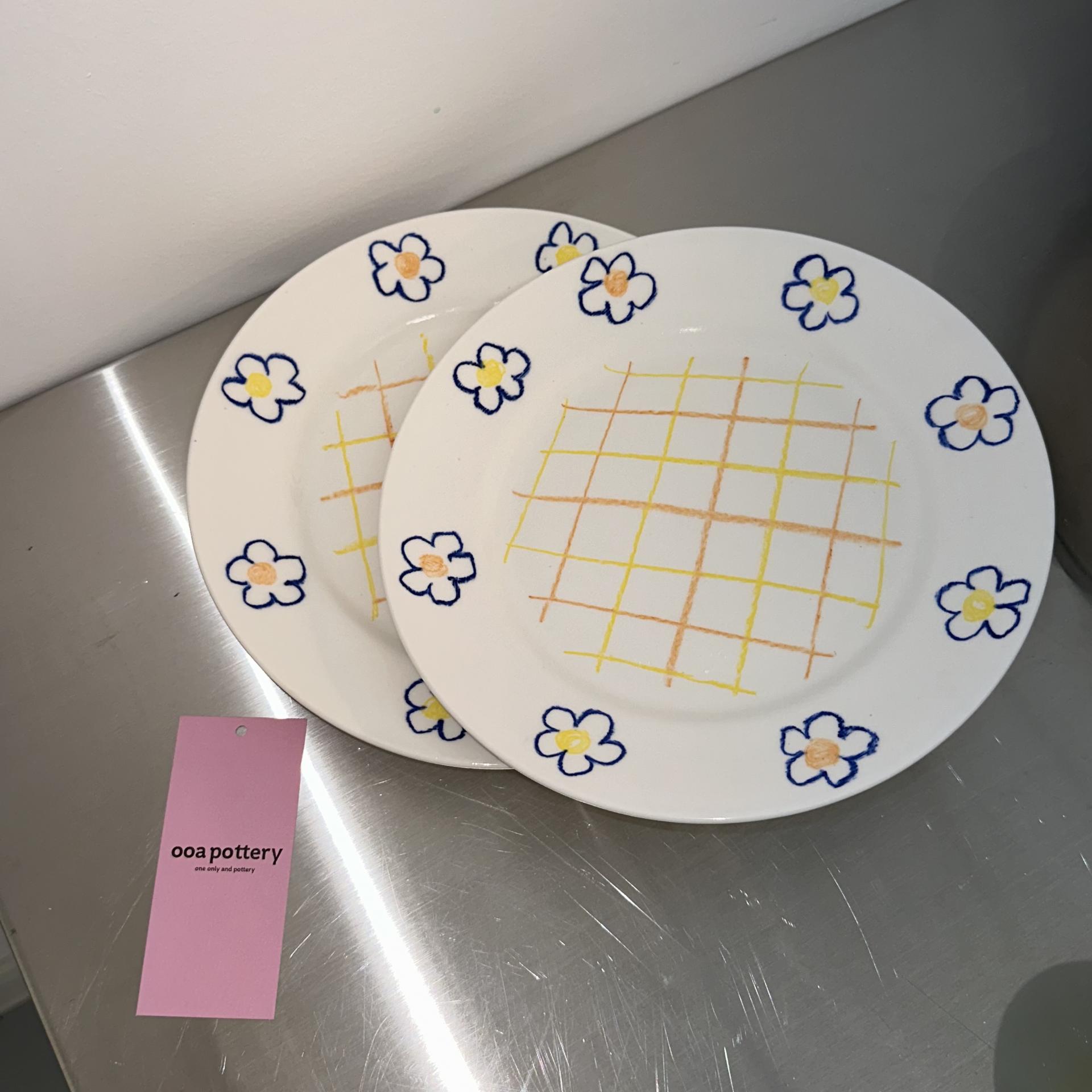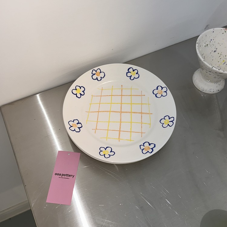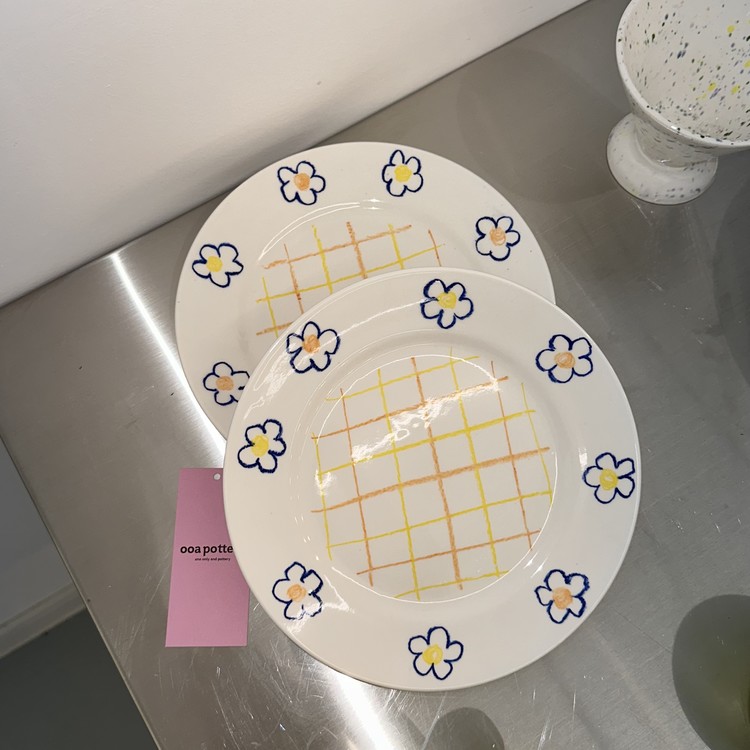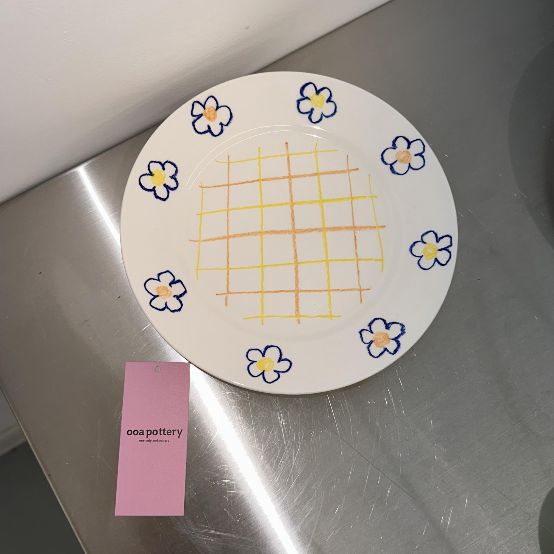 체크 페인팅으로 포인트를 준 blue flower check plate 입니다.