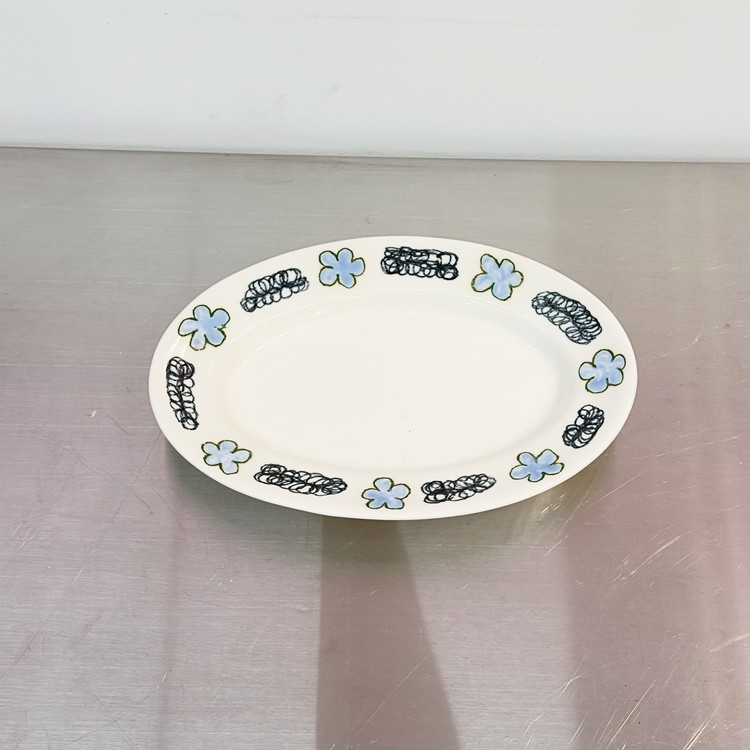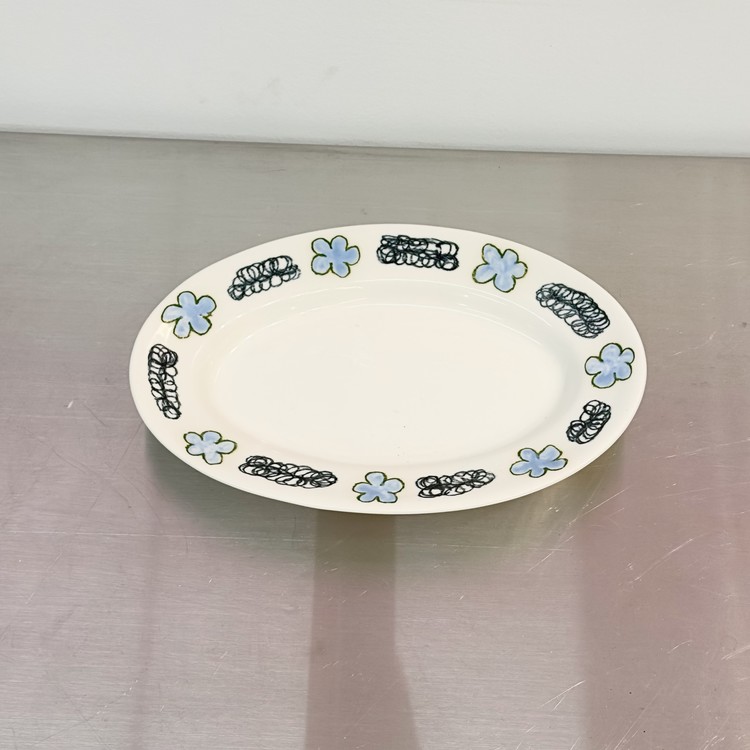 플라워패턴과 크레용 페인팅으로 포인트를 준 flower oval plate 입니다.
